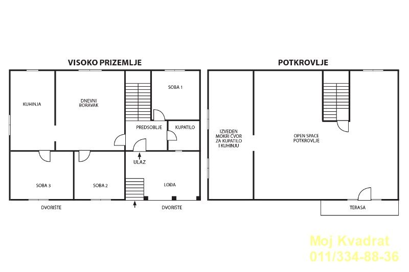 - potkrovlja (100m2) koje se sastoji od jedne velike prostorije koja se može pretvoriti u stan (struktura po želji). U suterenu kuće se nalaze dve podrumske prostorije.