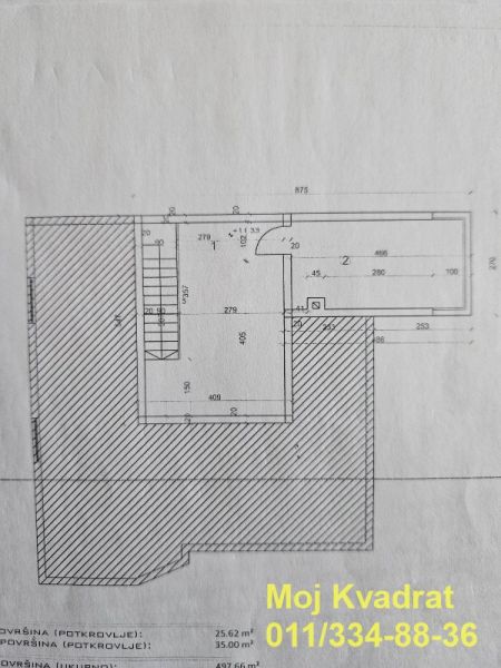 Uknjižen na 82m2. Ukupna stvarna merena kvadratura iznosi 150m2.